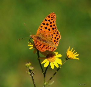 Suele posar con sus alas abiertas de «par en par», casi perfectamente alineadas en un plano mostrando la vista dorsal o de los anversos de sus alas, pero cuando se “distrae” o se concentra en algo importante para ella, entonces deja ver lo más sorprendente y brillante de ella: las manchas plateadas de sus reversos…